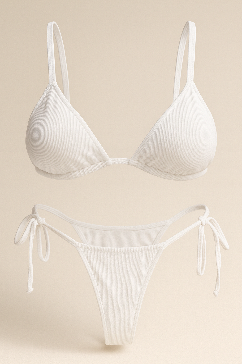 Descubrí nuestra **malla bikini encanalada**, confeccionada en **lycra de alta calidad**, que se adapta perfectamente al cuerpo brindando comodidad y estilo. Su diseño clásico y versátil la convierte en un infaltable de la temporada.