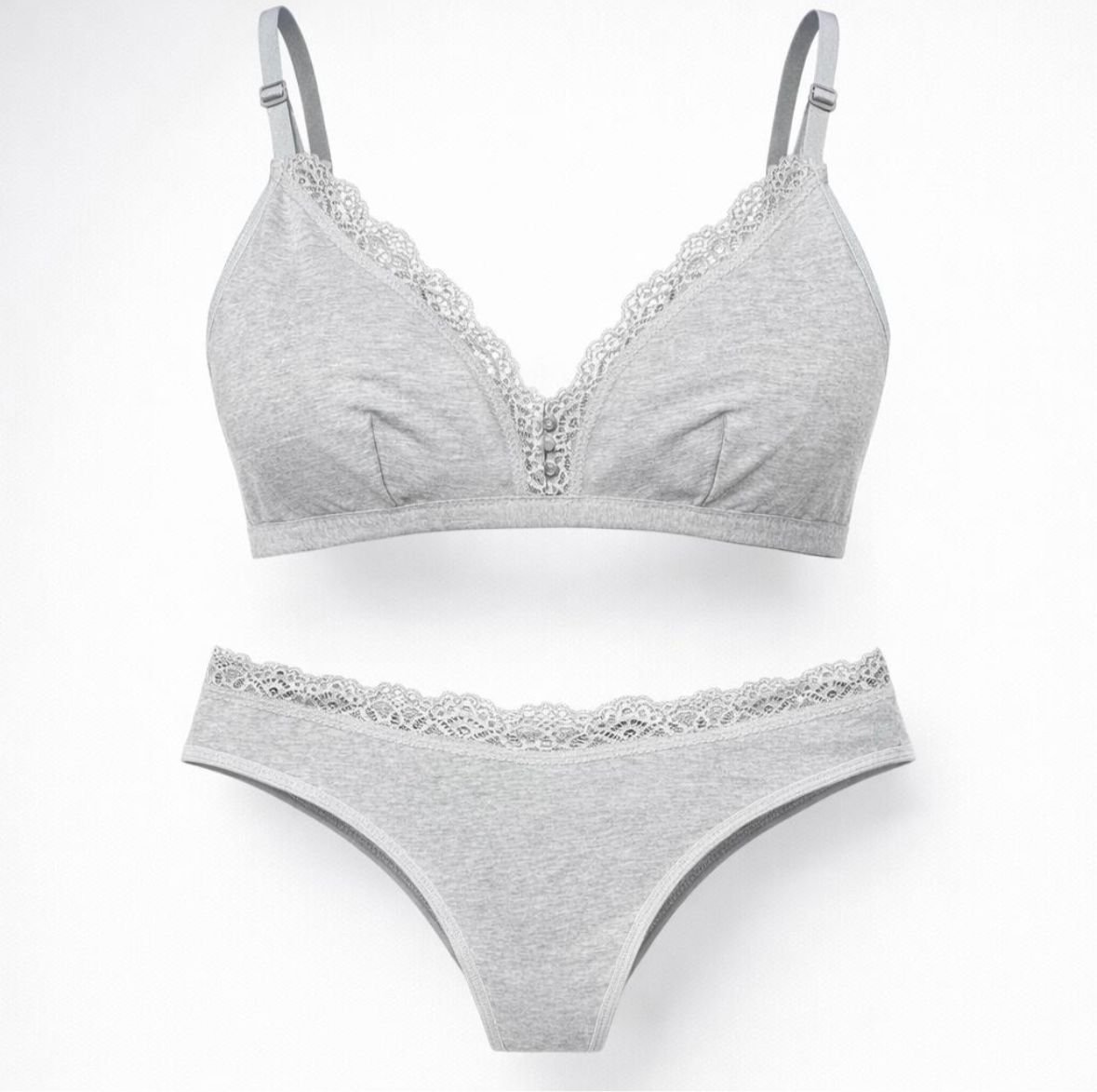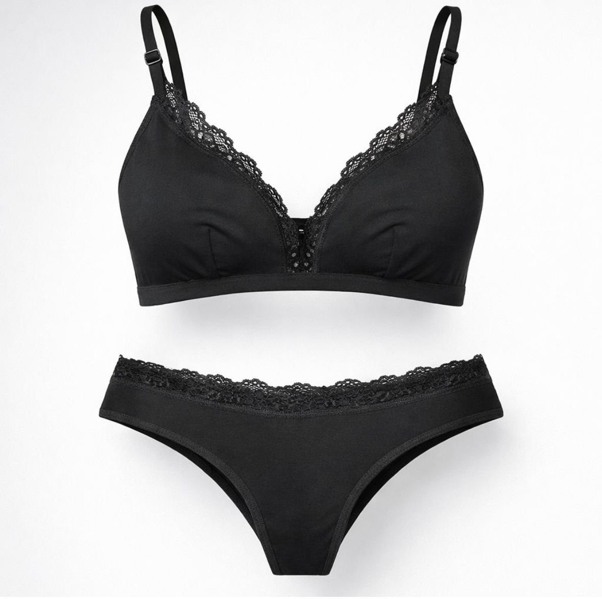 MEDIA DOCENA Conjunto Bralette en Lycra y Algodón con detalles en puntilla + Colaless Entera